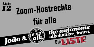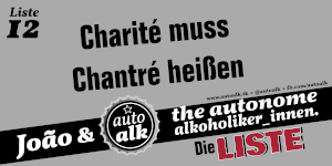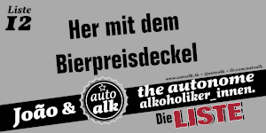 Also, per Brief oder am 29.06.2021 vor Ort, seid wieder clever und wählt Liste 12, wählt João & autonome alkoholiker_innen.Die LISTE.