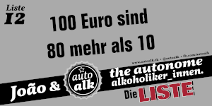 Also, seid am 16. und 17. Januar 2018 clever und wählt the autonome alkoholiker_innen.Die LISTE – Sie ist sehr gut.