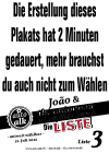 Also seid clever und eilt am Dienstag, den 12. Juli 2022, heraus, um Liste 3 – João & autonome alkoholiker_innen.Die LISTE zu wählen, more bang for the buck geht nicht.